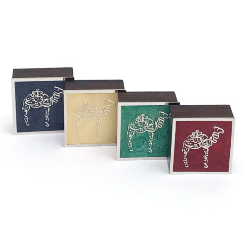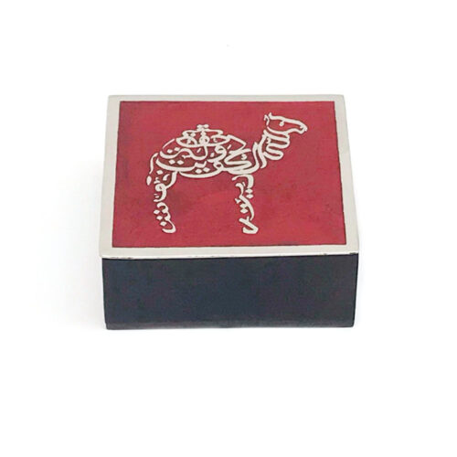 علبة من الخشب بغطاء معدني نقشة جمل