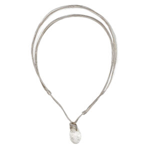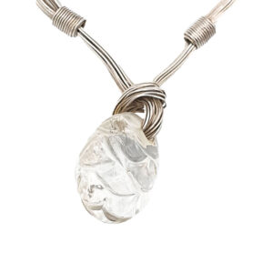 قلادة فضية (بأجزاء متحركة، وأسلاك متعددة) مع دلاية من الكريستال الصخري المنحوت