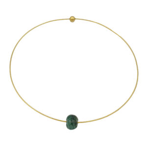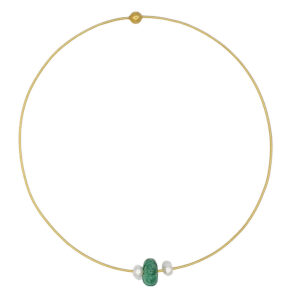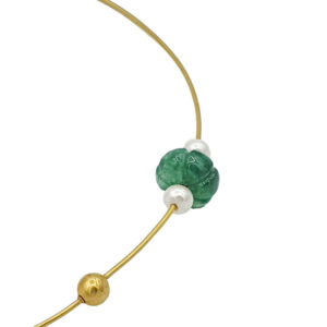 قلادة ذهبية – طوق – (عيار ٢١ قيراط)، من حجر الزمرد الأخضر ولؤلؤتين