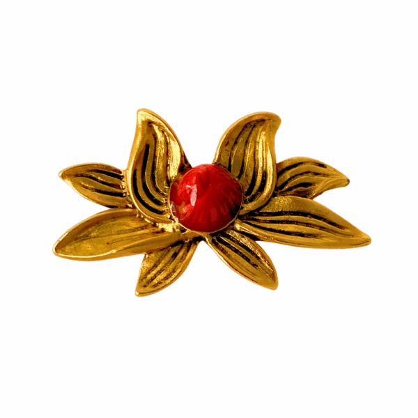 هذا البروش مستوحى من تصميم زهرة اللوتس في مخطوطة من القرن الرابع عشر الميلادي. مصنوع حصريًا لدار الآثار الإسلامية، وهو مطلي بالذهب عيار 24 قيراطًا فوق سبيكة البيوتر.