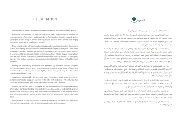 تم تصميم هذا المعرض للقطع الثمينة واللوحات المصغرة التي تكتمل بعضها البعض لتشهد على البذخ الأسطوري والتطور للبلاط الهندي, والأهم من ذألك كله إظهار رعاية الأمراء للحرفية الفنية الرائعة خلال القرنين السادس عشر والثامن عشر.