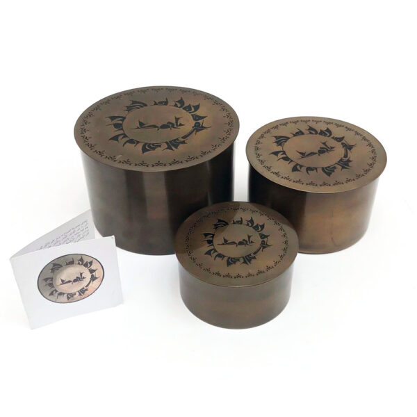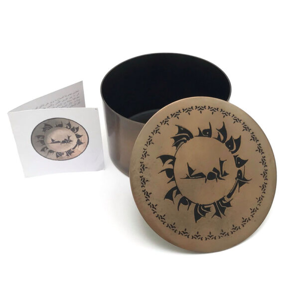 صندوق “الجود” الخاص بنا مصنوع يدويًا من النحاس المطلي بالنيكل، وهو مصنوع في الهند حصريًا لدار الآثار الإسلامية. الزخرفة مزينة بعناصر محفورة ومطلية بالمينا بالنقش العربي: ” الجود من أخلاق أهل الجنة والسلامه بركة”، التصميم مستوحى من القطعة: LNS 105 C وهي من مجموعة الصباح عبارة عن وعاء من الخزف مع نقش خطي في الأعلى. من إيران (ربما نيشابور)؛ القرن العاشر.