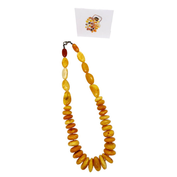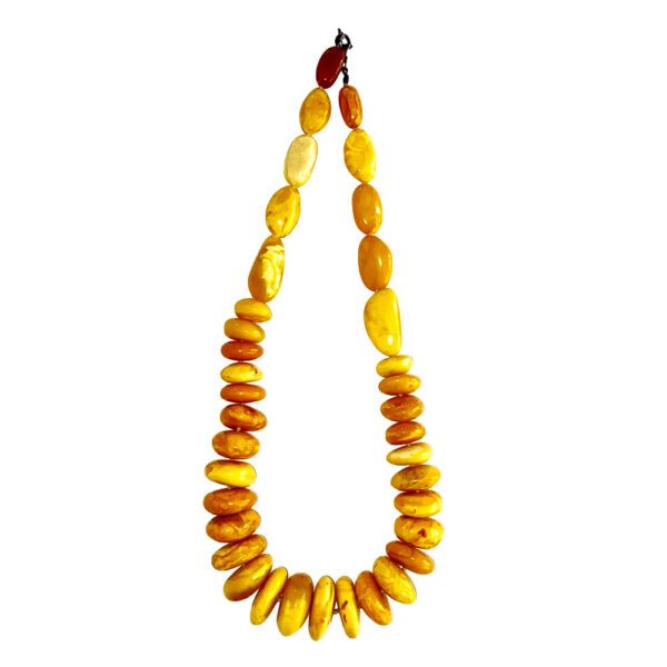 عقد من خرزات العنبر متعددة الأشكال وغير شفافة، باللون البرتقالي الفاتح مع مشبك من الفضة الإسترلينية (الطول 53 سم).