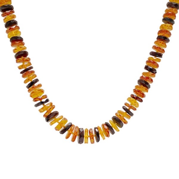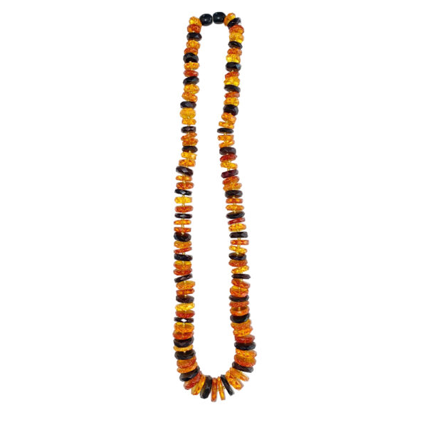 خرزات متعددة الألوان من العنبر المنحوت بأسطح متعددة مع مشبك من العنبرعلى شكل برغي (الطول 50 سم)