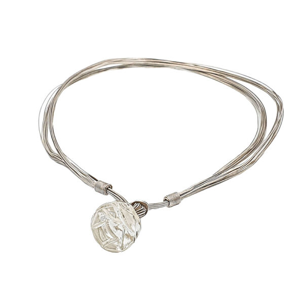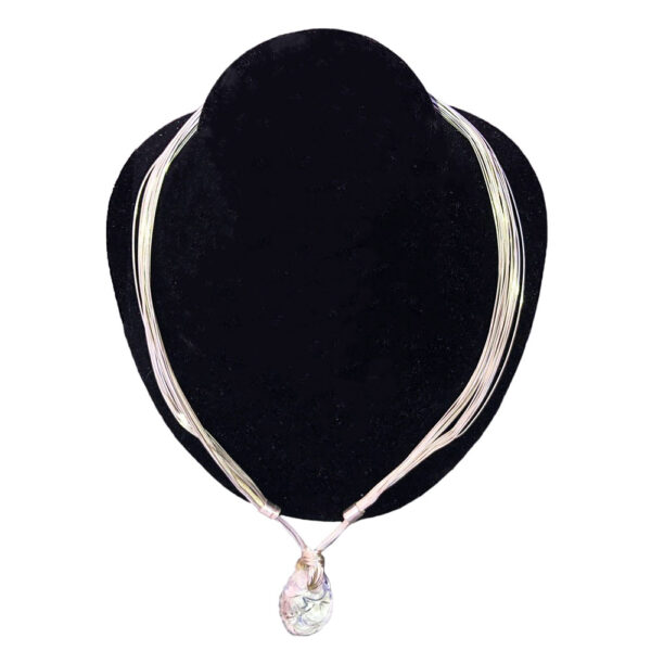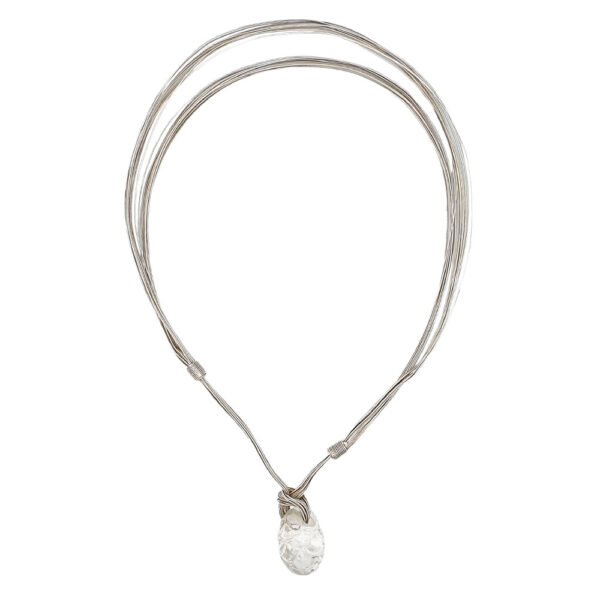 صُنعت هذه الدلاية الفريدة من الكريستال الصخري المنحوت يدويًا والتي يبلغ وزنها 45 قيراطًا في الهند باستخدام تقنيات عريقة، وقد استوحى نحتها من الزمرد المنحوت في القرن السابع عشر. مصنوعة حصريًا لدار الآثار الإسلامية، تتدلى من قلادة فضية 825 (طوق) بإغلاق داخلي. التصميم مستوحى من القطعة LNS 2214 J وهي عبارة عن زمرد 90.4 قيراط منحوت ومحفور من الهند، الفترة المغولية من القرن السادس عشر إلى السابع عشر.