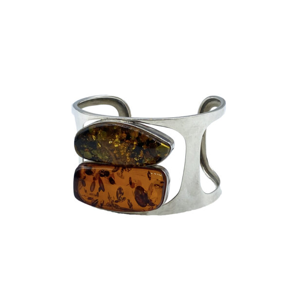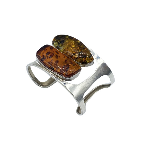 معضد من الفضة الإسترلينية مزين بخرزتين من العنبر.
