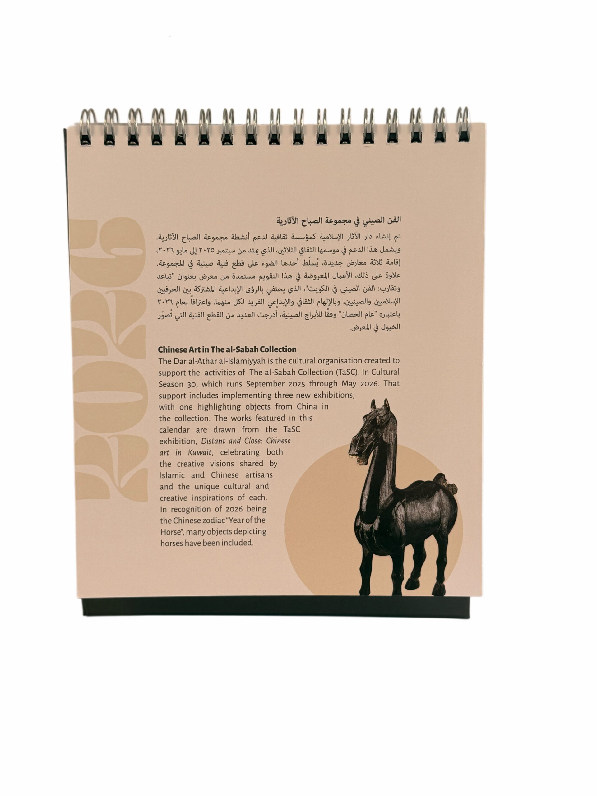 The Dar al-Athar al-Islamiyyah is the cultural organisation created to support the activities of The al-Sabah Collection (TaSC). In Cultural Season 30, which runs September 2025 through May 2026. That support includes implementing three new exhibitions, with one highlighting objects from China in the collection. The works featured in this calendar are drawn from the TaSC exhibition, Distant and Close: Chinese art in Kuwait, celebrating both the creative visions shared by Islamic and Chinese artisans and the unique cultural and creative inspirations of each.