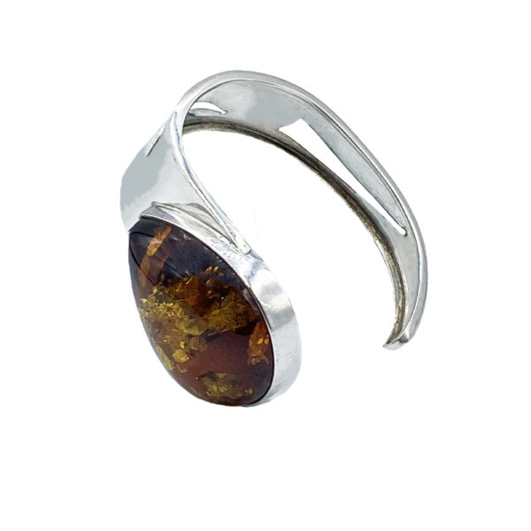 Sterling silver (s/s) cuff bracelet single Ambertear-shaped bead Silver Cuff (4x3cm max width).