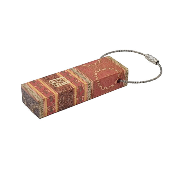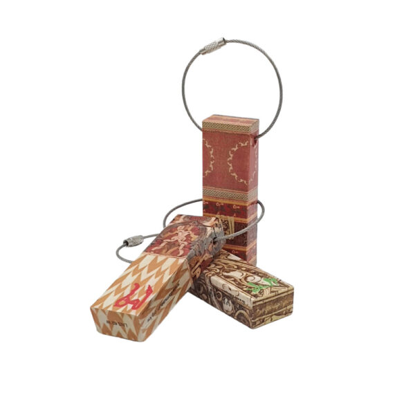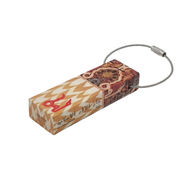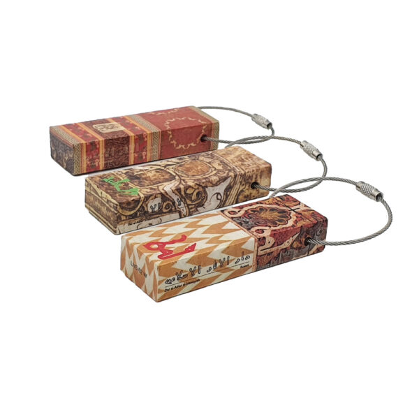These fun key rings were exclusively made in the USA for DAI. Using exclusive designs from Lebanon that combine colourful motifs with Arabic calligraphy which was inspired by Du’a (Arabic) represented on objects from the collection, they show the variety of visual style and content of the blessings & benedictions.