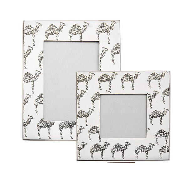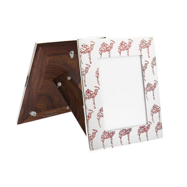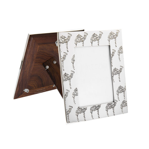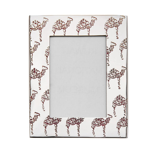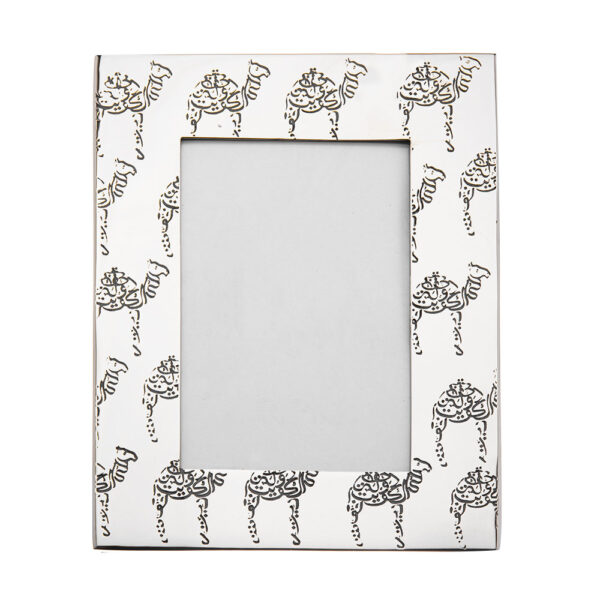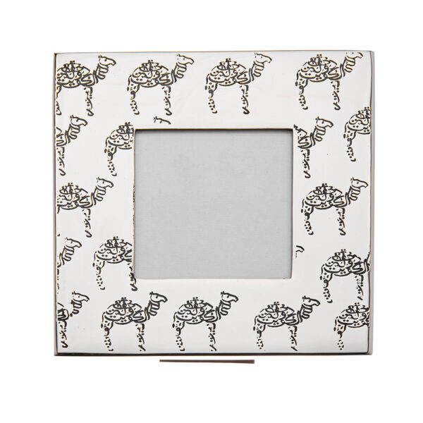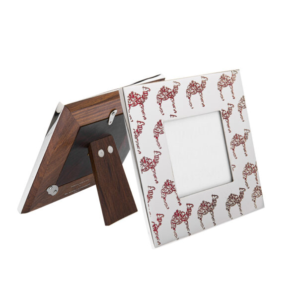 الخط هو أقدم وأشهر أشكال الفن الإسلامي، ويعني حرفياً “الكتابة الجميلة”. إطار لسطح الطاولة الجمل الخاص بنا مصنوع حصريًا في الهند من النحاس المطلي بالنيكل مع ظهر من الخشب الصلب. تم إنشاء تصميم الجمل المحفور من قبل د. بيترسون باستخدام كلمات (حفظ الله الكويت)