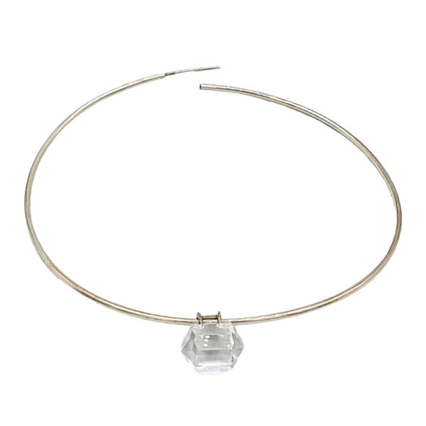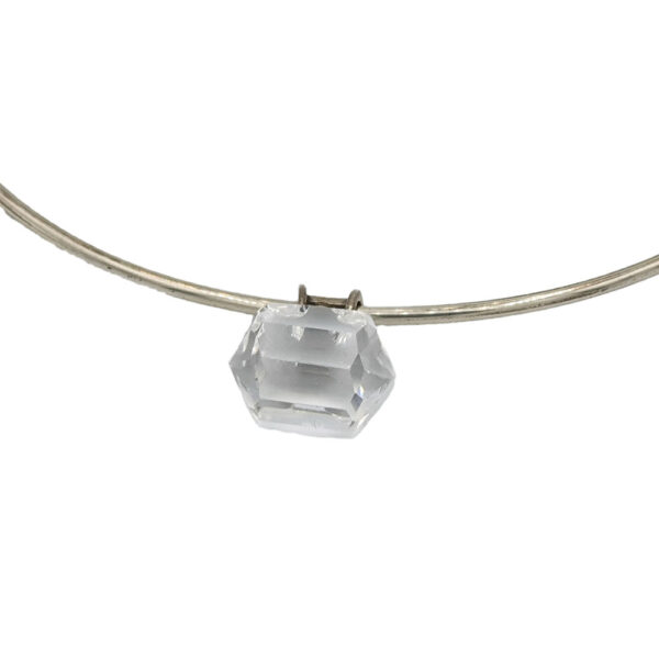 This hand-cut rock crystal Tavis pendant was made in India using time-honoured techniques, the cut of which was inspired by a 17th century facet-cut diamond. Exclusively for DAI, it is suspended from 825 silver choker with an insert closure. Inspirational Object: LNS 1804 J is a Taviz (Amulet) facet-cut from a 28.3 carat diamond of yellowish tint from India, Deccan or Mughal, perhaps 17th c. AD (or earlier).