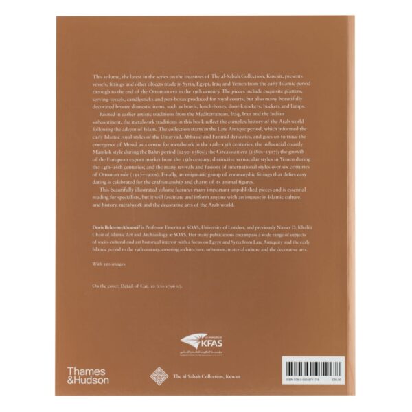 This volume, the latest in the series on the treasures of The al-Sabah Collection, Kuwait, presents metalwork made in Multiple Islamic countries from the early Islamic period through the end of the Ottoman era in the nineteenth century. The pieces include exquisite platters, serving vessels, candlesticks, and pen boxes produced for royal courts, in addition to many beautifully decorated bronze domestic items, such as bowls, lunch boxes, door knockers, buckets, and lamps.