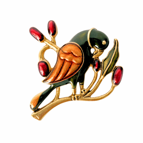 This parrot brooch is inspired by a beautiful bird image in a marble panel in 11th – 12th century CE. Made exclusively for DAI, it is 24 Kt gold plating on pewter.