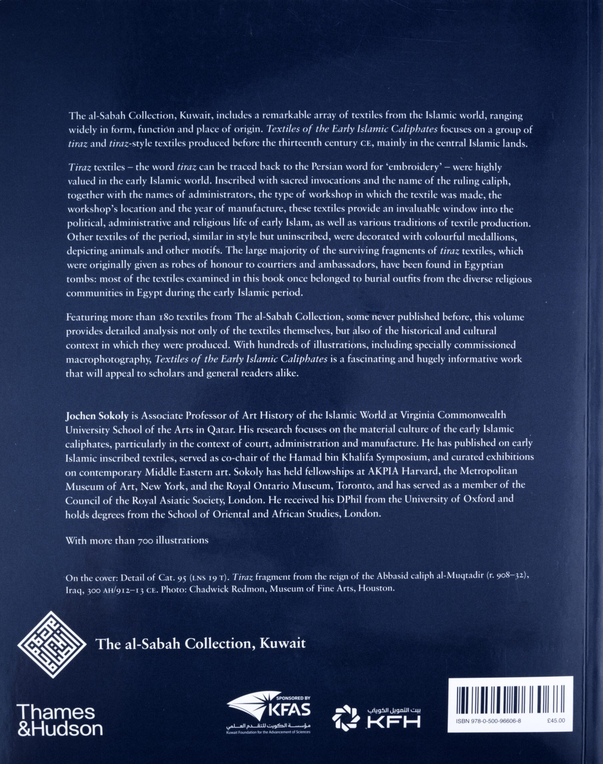 The al-Sabah Collection, Kuwait, includes a remarkable array of textiles from the Islamic world, ranging widely in form, function, and place of origin. Textiles of the Early Islamic Caliphates focuses on a group of tiraz and tiraz-style textiles produced before the thirteenth century CE, mainly in the central Islamic lands.
